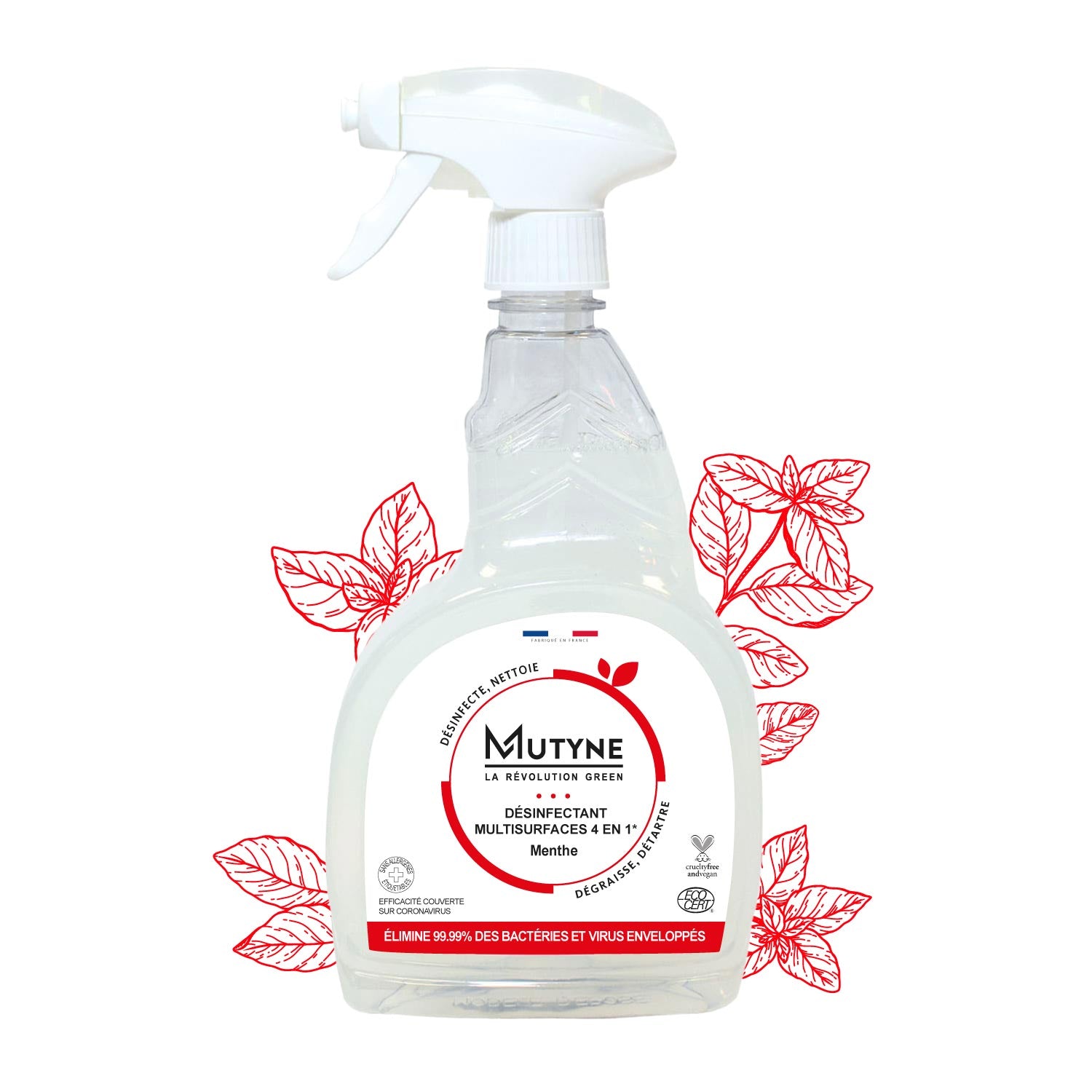 Alors quand il s'agit de choisir un spray nettoyant désinfectant, veillez à bien lire les étiquettes pour faire le meilleur choix ! Avec Mutyne et notre spray désinfectant écologique multi surfaces 4 en 1, qui combine action virucide, bactéricide et levuricide avec un temps de contact plus court, nul doute que nous ferez le meilleur choix.